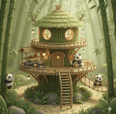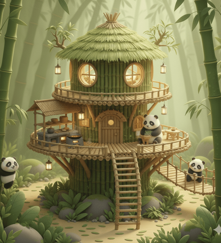 Dort lebe ich heute noch zusammen mit meiner Mama, und meinen Geschwistern in unserem gemütlichen Haus aus hellem Bambusholz.
