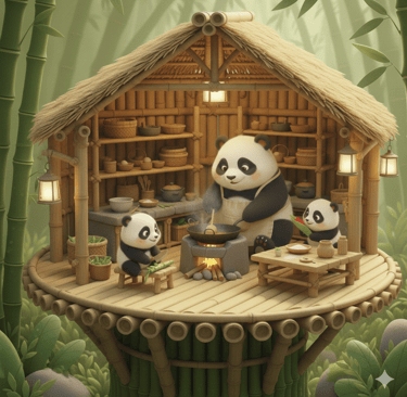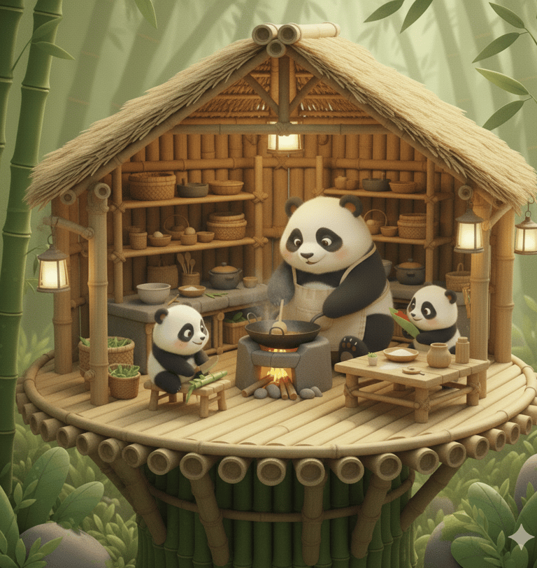 Hier riecht es immer so gut: Mama ist einfach die beste Köchin im Bambuswald.